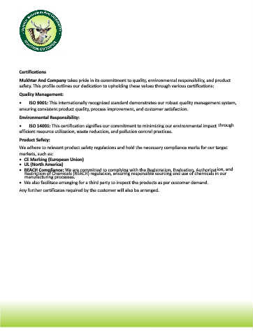 Mukhtar And Company takes pride in its commitment to quality, environmental responsibility, and product
